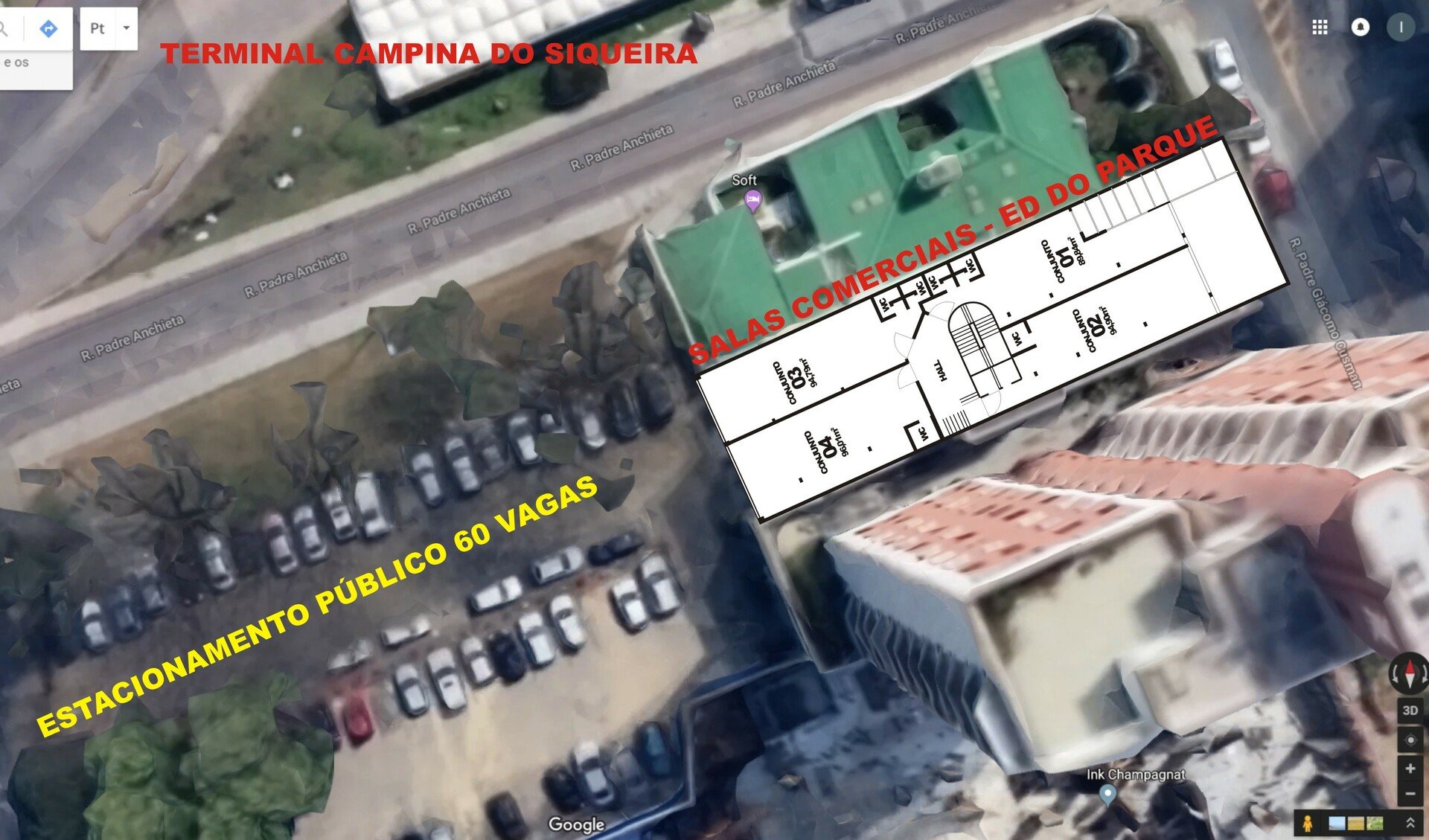 Uma ampla loja térrea, com frente para a Rua General Mário Tourinho e fundos para a Rua Padre Giácomo Cusmano.