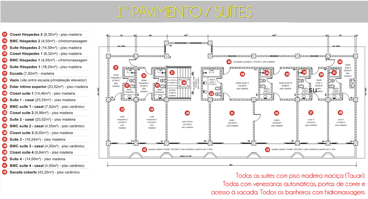 Programa: 8 suítes | 8 vagas | 2 pavimentos + ático